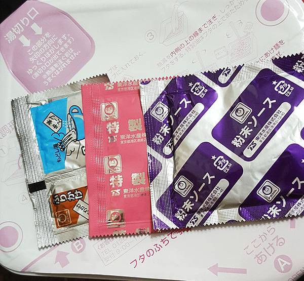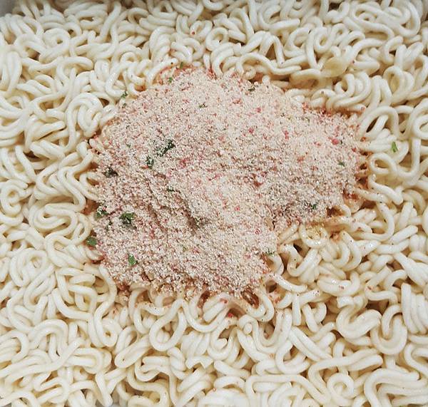 明太子粉,其實說明書有寫要先扮油(粉紅色那包)Achu第一次吃時沒照順序放,不過並沒有影響。
