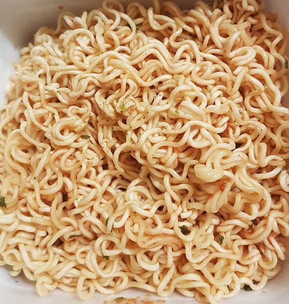 油包一打開就聞到濃濃的奶油香,小小一包卻有種香到臭的感覺,很擔心太濃還好攪拌後味道剛剛好,很難形容明太子的味道但是就是好吃!確實的吃得到明太子微微的香辣味和濃郁的奶油香好吃的停不下來!
