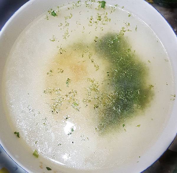 Achu不小心把海苔粉加到湯裡去了!所以Achu才一直強調湯只用水藍色那包,湯的未到應該是和之前吃過的中華高湯但是完全被海苔味蓋過了。後來有成功喝到正常的湯,味道比之前吃過的還淡不知是因為Achu水加太多還是為了搭配奶油明太子口味而特地改配方。